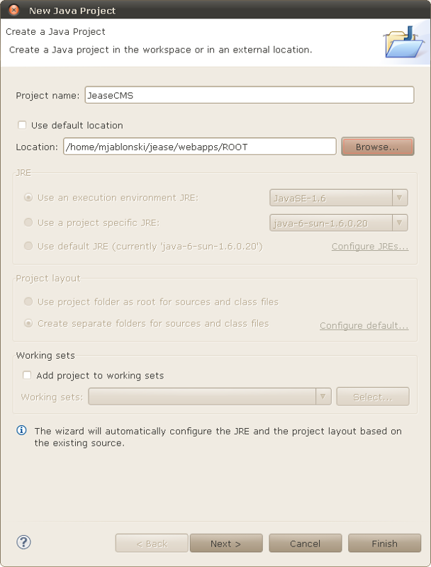 The following instructions are written for Eclipse, because I'm developing Jease with Eclipse.