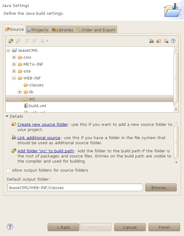 Now select "Jease > WEB-INF > src" and click