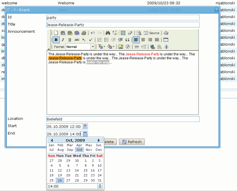 All the boring rest (persistence, graphical user interface, web-site-navigation, ...) is automagically handled by Jease.